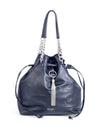 Jimmy Choo Leather Top Handle Tassel Bucket Bag Black Silver