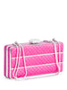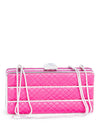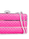 Judith Lieber Quilted Satin Rhinestone Embellished Clutch on Chain Pink