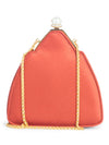 Judith Lieber Satin Pearl Bejeweled Clutch on Chain Brown