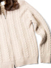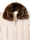 Loro Piana Logo Cableknit Sable Fur Collar Jacket Ivory