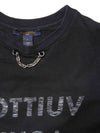 Very GoodGuaranteed Authentic Louis Vuitton Short Sleeve Shirt or 100% of your money back. This Louis Vuitton top is in black cotton fabric and features a graphic print with a heather white finish. The front showcases a reversed Louis Vuitton logo and a silver tone chain embellishment on the neckline with black patent leather accents.