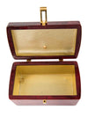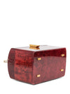 Very GoodGuaranteed Authentic Lucite Bejeweled Top Handle Bag or 100% of your money back. This bag is crafted in polished burgundy lucite, featuring structured silhouette and top handle incrusted with rhinestones. The bag opens to a spacious interior lined with gold tone textured material.
