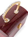 Vintage Lucite Bejeweled Top Handle Bag Burgundy Gold