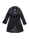 Like NewGuaranteed Mackage Wool Collared Jacket or 100% of your money back. This Mackage jacket is in black wool fabric with leather accents, featuring a knitted collar, large leather buttons, and two front pockets.