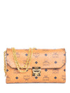 MCM Logo Monogram Leather Flap Messenger Bag Brown