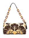 Miu Miu Velvet Floral Top Handle Flap Bag Brown