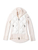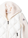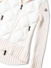 Moncler Logo Quilted Down Wool Zippered Asymmetrical Sweater Jacket Ivory