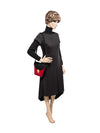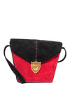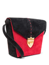 Paloma Picasso Vintage Suede Logo Stitched Shield Clasp Messenger Bag Red Black