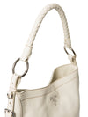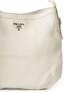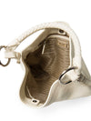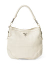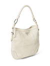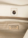Prada Logo Leather Woven Handle Hobo Bag White Silver