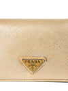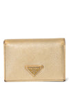 Prada Logo Tessuto Leather Compact Wallet Gold