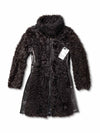 Saks Fifth Avenue Lamb Fur Leather Coat Black