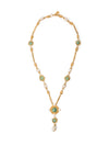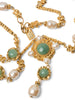 St. John Couture Gold Plated Faux Pearl Cabochon Necklace Ivory Green