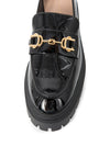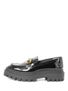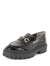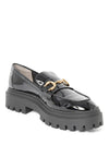 Stuart Weitzman Patent Leather Gold Horsebit Platform Loafers Black