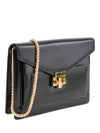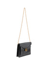 Guaranteed Authentic Tiffany Buckle Messenger Bag or 100% of your money back. This Tiffany bag is done in smooth black leather with gold tone hardware. It features a gold chain strap as well as a detachable black leather strap. This bag has a gold "T" logo buckle closure and opens to reveal a flap pocket as well as a black leather lined interior with one zipper pocket and one slip pocket.