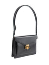 Tiffany & Co. Vintage Leather T Logo Buckle Messenger Flap Bag Black Gold