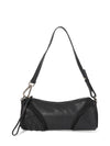 Guaranteed Authentic Tod`s Leather Studded Pochette Bag or 100% of your money back. This Tod`s bag is in combination of black leather and black canvas featuring silver tone hardware and stud detail on one side. This bag features embossed logo on the side panel and adjustable top handle. This bag opens with a zippered closure to a black canvas lined interior.