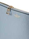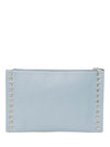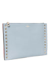 Valentino Logo Leather Rockstud Zippered Clutch Blue Gold