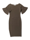 Valentino Short Sleeve Bodycon Midi Dress Olive Green