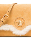 Versace Logo Suede Fur Medusa Messenger Bag Brown Beige