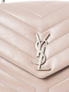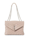Yves Saint Laurent Logo Quilted Chevron Leather Medium Loulou Bag Taupe Silver