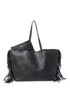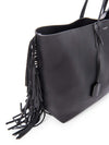 Yves Saint Laurent Leather East-West Fringe Tote Bag Black