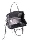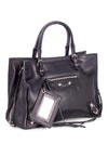 Like NewGuaranteed Authentic Balenciaga Neo Classic City Leather Bag or 100% of your money back. It is in black soft calfskin leather with silver tone hardware. It features a frontal zippered pocket at the exterior of the bag, silver tone hardware detailing at the exterior, leather tassels and mirror, dual flat leather handle tops, and a magnetic closure opens to a black suede lining and a patch pocket.