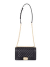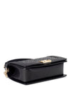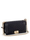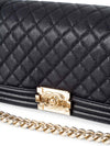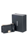 New with TagsGuaranteed Authentic Chanel CC Logo Medium Leather Boy Bag or 100% of your money back. This bag is crafted in black glazed quilted caviar leather with adjustable strap and gold-tone hardware. The bag features a CC logo push-lock front closure and black lined interior with one slit pocket.