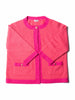 Like NewGuaranteed Authentic Chanel Cardigan or 100% of your money back. It is in a pink cashmere fabric with a hot pink outline. It features pink and gold CC logo buttons, two front pockets and three quarter sleeves.