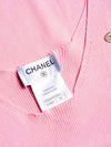 Very GoodGuaranteed Authentic CHANEL Sleeveless Blouse or 100% of your money back. This CHANEL blouse is crafted in pink cotton and silk blend ribbed fabric. It features a sleeveless design with a gold tone CC Logo on the front left corner.