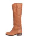 CHANEL CC Logo Leather Pull On Flat Boots Brown