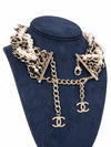 CHANEL CC Logo Pearl Multi Chain Choker Necklace Gold
