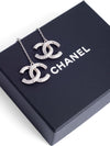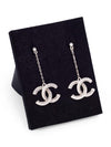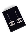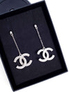 CHANEL CC Logo Swarovski Crystals Drop Earrings Silver