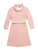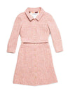 CHANEL CC Logo Tweed Cropped Jacket Skirt Suit Blush Pink