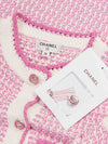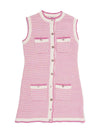 CHANEL CC Logo Tweed Fringe Mini Dress Pink White