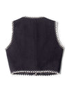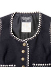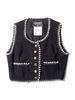 CHANEL CC Logo Tweed Wool Fringe Vest Black White