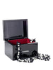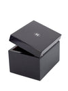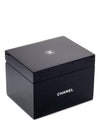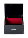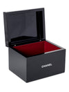 Chanel LA BOÎTE LAQUÉE Box or 100% of your money back. This Chanel piece is in black lacquered wood with red lambskin lining, magnetic closure and Chanel logo at front and top of the box.