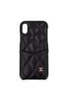 Very GoodGuaranteed Authentic Chanel Lambskin Quilted iPhone X Case or 100% of your money back. This Chanel iPhone case is from the 2019 collection and is in quilted black calfskin leather with gold CC logo and brown lining. The exterior has a slip pocket for credit cards.