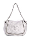 CHANEL Leather Chain Around Flap Bag Silver