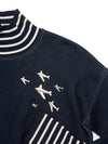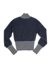 Chanel Logo Airplane Striped Turtle Neck Sweater Navy White