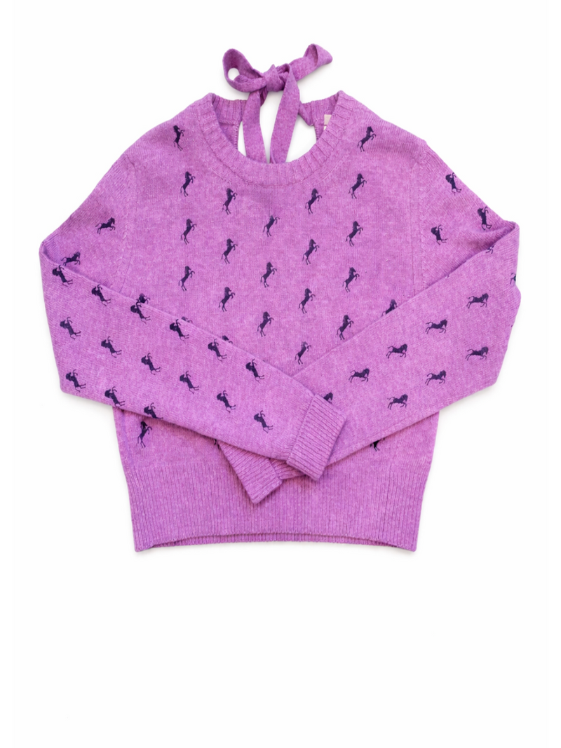 Chloe Knit Wool Horse Embroidered Cropped Sweater Lavender