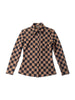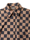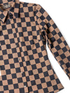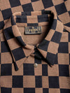 Fendi FF Logo Checkered Fitted Jersey Button Up Shirt Brown