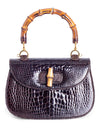 Gucci Genuine Crocodile Bamboo Top Handle Bag Brown