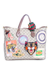 Gucci GG Supreme Patch Logo Tiger Tote Bag Brown