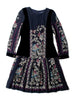 Guaranteed Authentic Gucci dress or 100% of your money back. This dress is in black silk and velvet with long sleeves, pleating at bottom and a mosaic design.
