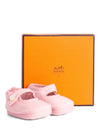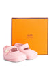 Like NewGuaranteed Authentic Hermes Baby Shoes or 100% of your money back. These Hermes baby shoes are in a soft pink laine material that will keep your baby's feet nice and warm. It features a brilliant ivory button closure on each shoe.