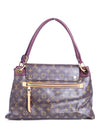 Very GoodGuaranteed Authentic Louis Vuitton Shopper Bag or 100% of your money back. It is in brown LV monogram with gold tone hardware with burgundy leather handles and trim, and a rear zip pocket. The push lock closure opens up to burgundy leather and suede lining with multiple slip pockets and an interior zip pocket.