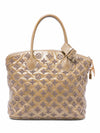 Very GoodGuaranteed Authentic Louis Vuitton Top Handle Bag or 100% of your money back. This Louis Vuitton bag is in gold LV monogram patent leather with gold tone hardware. It features dual rolled top handles, an LV lock embellishment, and bottom feet for protection. The top zipper closure opens to reveal a beige leather lined interior.