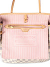 Like NewGuaranteed Authentic Louis Vuitton Damier Azur Bag or 100% of your money back. This bag is in damier azur monogram. It features a removable Louis Vuitton pouch, gold hardware, one interior zip pocket, two leather top straps, pink stripped interior, and a hook clasp closure.