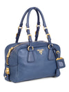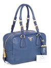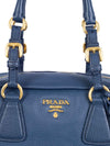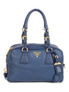 Like NewGuaranteed Authentic Prada Shoulder Bag or 100% of your money back. This bag is in Vitello blue grain leather with gold hardware. It features dual leather straps with a frontal Prada logo, protective bottom studs, and blue interior with one zipped pocket.
