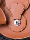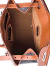 Guaranteed Authentic Ralph Lauren Ricky Bag or 100% of your money back. This bag is in black carbon fiber with brown leather accents and silver tone hardware. It features a Ricky lock, two calfskin straps with buckles, dual rolled leather top handles, and a key charm. The front flap closure opens up to a spacious interior with two patch pockets and a zipper pocket.